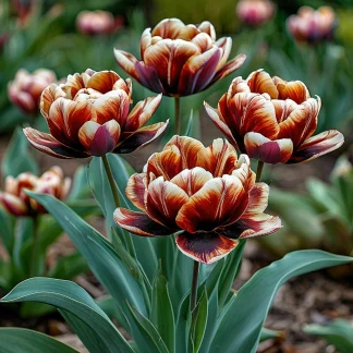 Представляем вашему вниманию тюльпан «Нимфас Дрим» — сорт, поражающий своей необычной красотой и таинственным очарованием. Этот тюльпан словно видение из мира грёз, его цветки, окрашенные в глубокие чёрно-коричневые тона с янтарными отблесками, создают ощущение загадочности и притягательности. «Нимфас Дрим» — это выбор для тех, кто ценит оригинальность, стремится создать в саду атмосферу мистики и готов восхищаться красотой, словно сошедшей со страниц легенд.